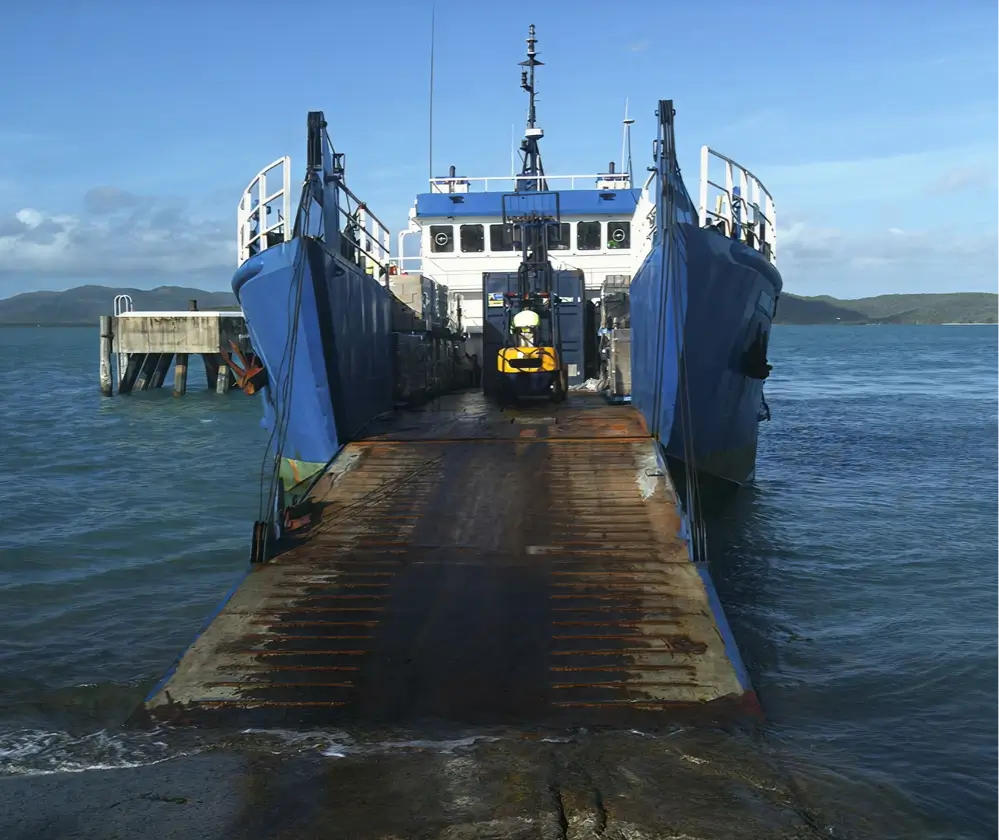 This 24 Meter landing craft is small but mighty. She specialises on our Western runs as her shallow draft allows easy access to the Western provincial lagoons.
